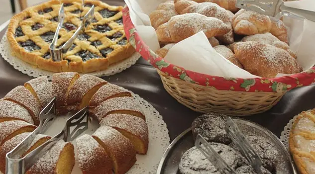 Non mancheranno i biscotti, fette biscottate, diversi tipi di marmellate, miele e Nutella il tutto da spalmare sul pane morbido e fresco.